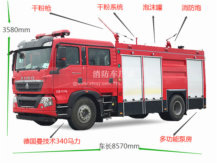 重汽T5G/8噸泡沫干粉聯(lián)用消防車(chē)